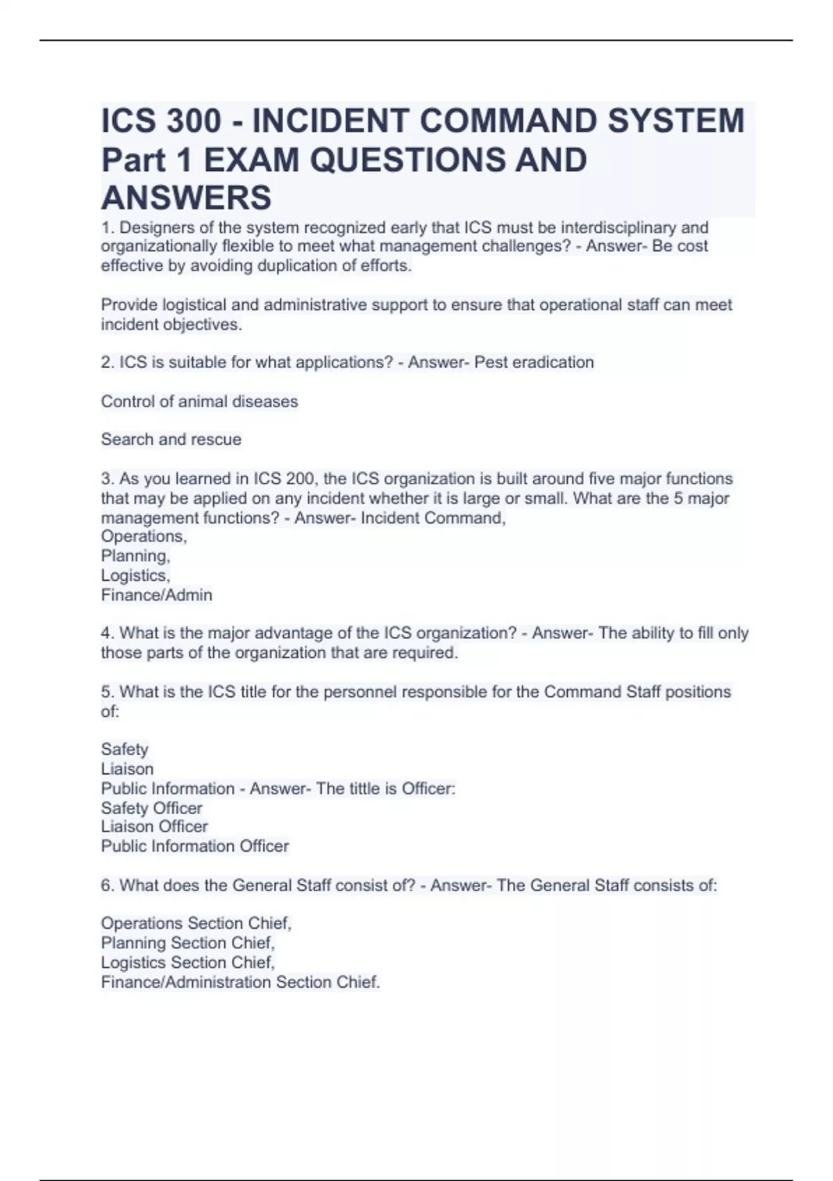 Ics 300 Test Answers 2024. The national incident management system (nims): The lack of logistical support can mean the difference between success and failure.
